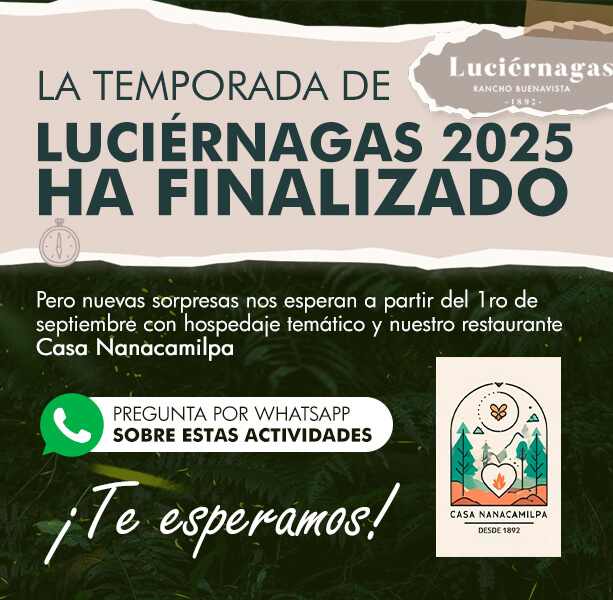 Disfruta de una inigualable noche de verano rodeado de paisajes naturales, pequeñas bellezas bioluminiscentes nos regalan este espectáculo mágico, miles de luciérnagas vuelan en el ocaso, maravillándonos con pequeñas luces en todo tu alrededor y algunas posando sobre ti.